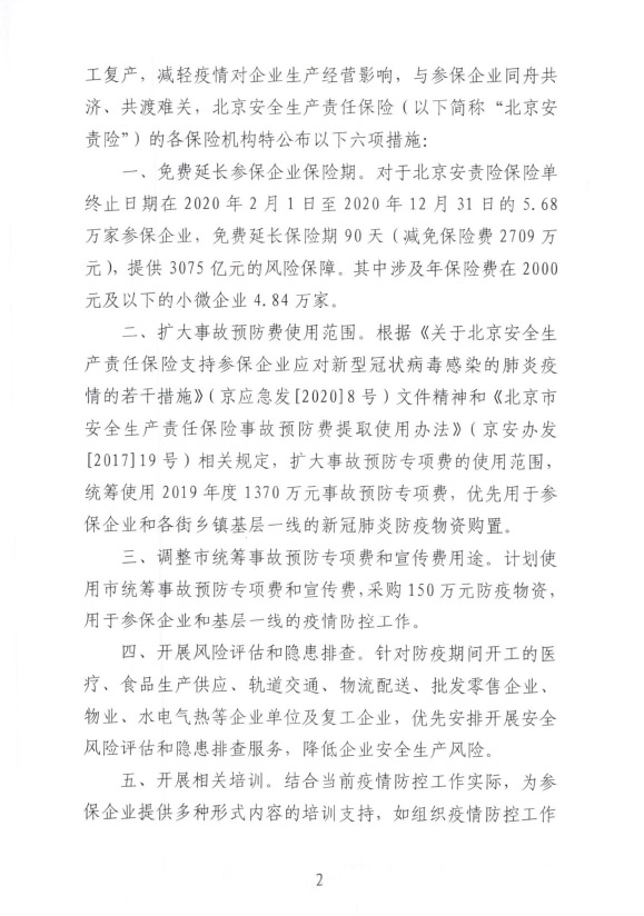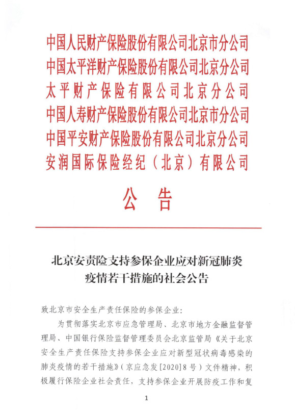 安责险支持参保企业应对新冠肺炎疫情若干措施的社会公告