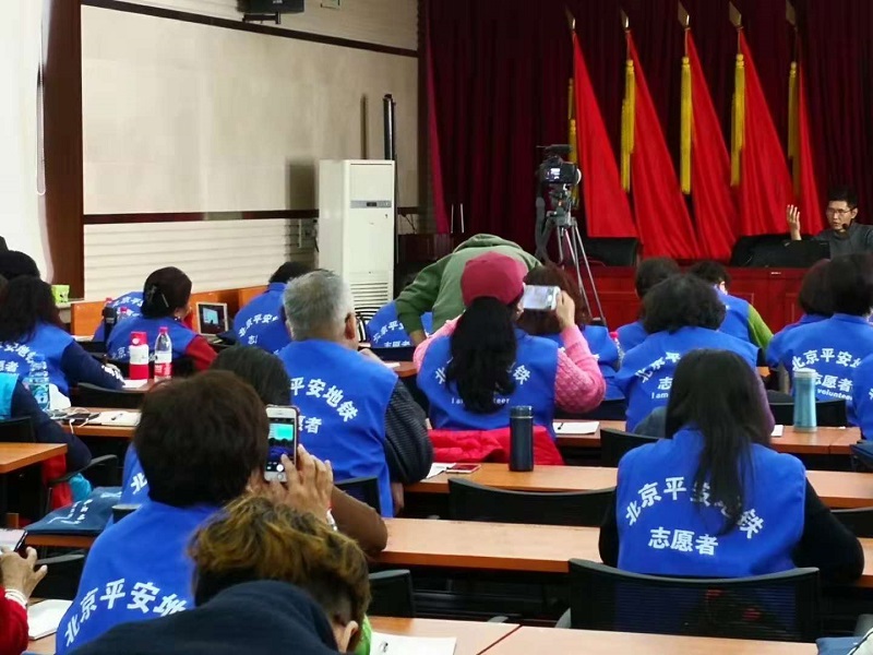 平安志愿者用手机拍摄记录授课内容