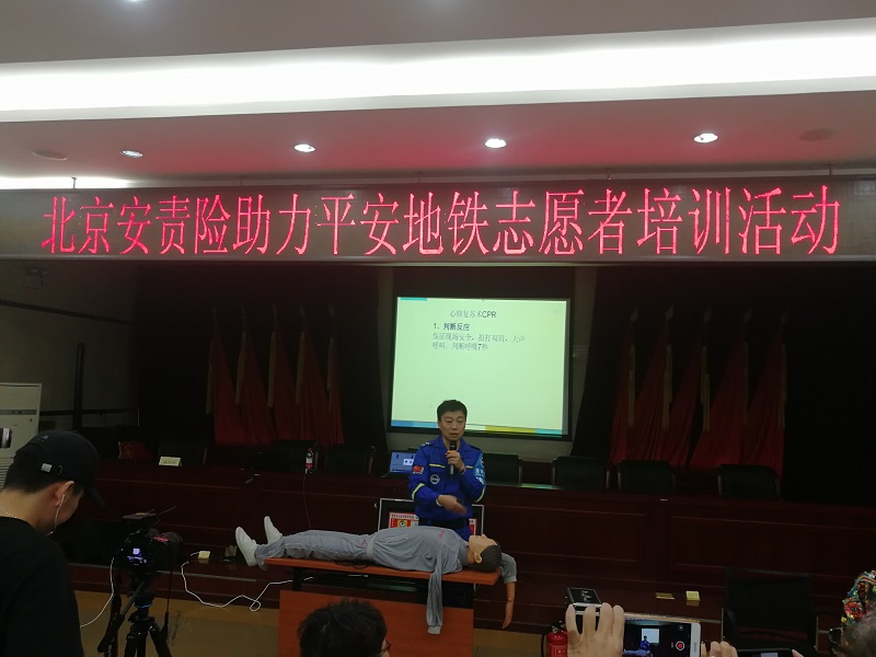 为强化北京地铁的应急管理能力,建立社会化的事故预防和应急救援体系,北京市地铁运营有限公司与安责险服务团队联合组织的安责险助力平安地铁志愿者培养计划于2018年11月27日正式启动。本次活动重点对志愿者进行多形式、多角度的安全和应急处置培训,提高志愿者自救、施救和协助疏散的意识和能力,增强地铁安全事故预防的社会力量,充分发挥群防群治作用,提高地铁突发事件应急处置能力。