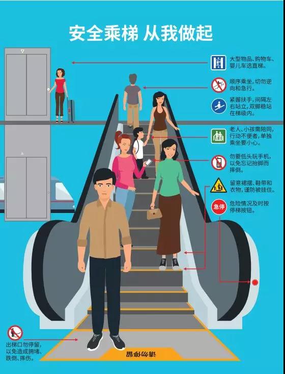 6. 乘梯需留意裙摆、鞋带等易挂衣物,避免被挂住。