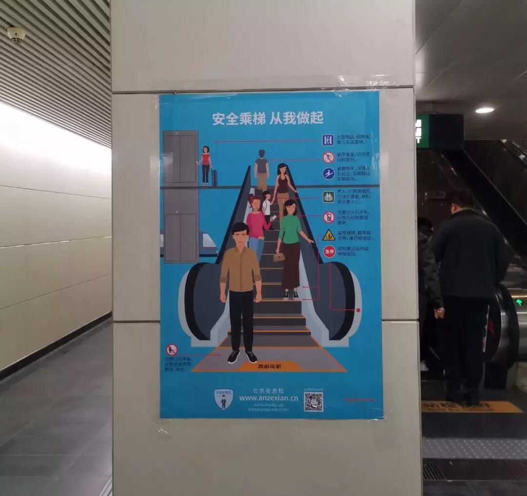 为提高乘客安全乘梯意识,减少事故发生,安责险服务团队共同印制了安全乘梯宣传海报,在北京市地铁运营公司旗下15条线路全面张贴,对乘客进行安全乘梯知识普及。